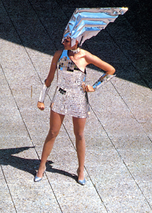 Today’s Sparkle Video features the sequin catsuit to end all sequin catsuits because this SPACED OUT SILVER number is totally OFF THE CHAIN! What’s amazing is how current the shape is- those shoulders are right on trend in 2010. I’m also tripping on the right sleeve that includes a fabulous, “hinting at a SPACE CUFF” detail! Notice when Emily Woods is moving, she knows how to work that body to show off this genius design?