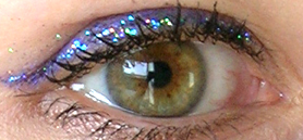 You already know how much I adore the “multi-sparkle” so you can imagine my delight with Urban Decay’s Heavy Metal Glitter Eyeliner in “Spandex”. Not only does this product have the most fabulous name, but it also allows for endless possibilities in sparkle eye fashion because while it may look dark in the tube, what’s really going on is every color glitter in the universe suspended in a clear base so you can lay it over anything you like. In the photo, I used it over Urban Decay’s 24/7 Pencil in “Lust” (my favorite), but next, I’m going to try it over black to create a “galactic-explosion” cat eye! I use the brush to pat it on in layers to completely cover the pencil for maximum sparkle ’cause that’s the way, uh-huh uh-huh, I like it!
