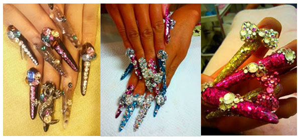 Once again, the Japanese have taken fashion and beauty to a whole ‘nother level.  While here in America, women are “oohing and ahhing” over nail polish strips with decorative patterns on them, this is what Gyaru models Sakurina and Cocona are featuring.