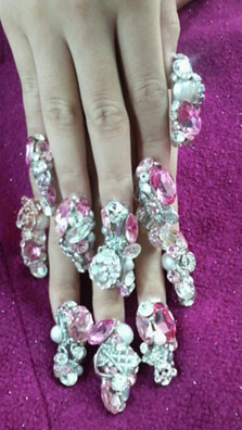 These ladies are my kind of girls because they take “More is More” and add lots More on top.   This glittering fabulosity has taken my life long fascination with Press-On-Nails and turned it into a whole new jewel encrusted obsession.  I simply must have my talons dripping with diamonds, swarovskis, dangling chains and a few bedazzled skulls here and there.  Of course, I won’t be able to do much aside from hang out and sparkle- but really, what else is there?