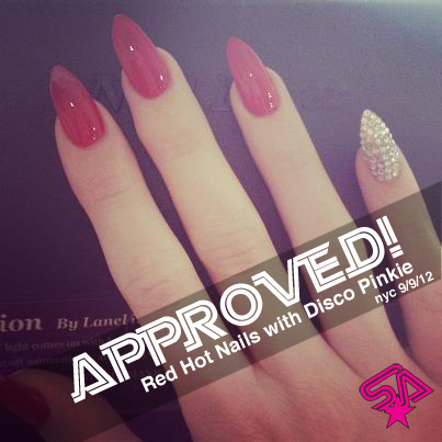 Nothing makes my heart beat faster than some ultra long, dangerously pointy red hot nails unless you throw in a dazzling disco pinkie, and then it’s more like KABLAM!  These gorgeous fingers are attached to NYC Nightlife Superstar Darian Darling, who makes a living by being herself (a.k.a. “fabulous”) twentyfour-seven.   Glamor, parties and glamorous parties are all in a day’s work for Darian, so having spectacular hands is not just a fashion choice, it’s a lifestyle requirement and- making sure that they sparkle?  APPROVED! APPROVED! APPROVED!