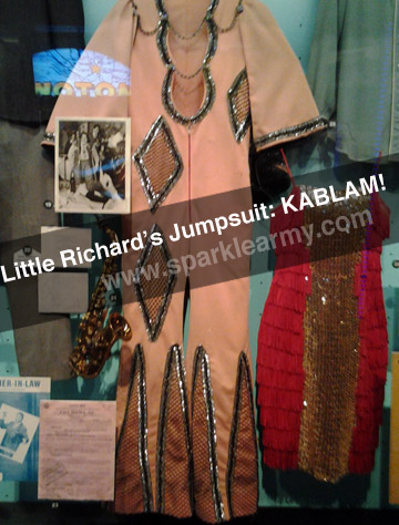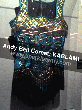 The Rock n Roll Hall of Fame Museum is also the place to go if you want to see many of the top designers to the Superstars under one roof and some of the most legendary are there including Nudie Cohn, Ossie Clark, Bob Mackie, Stephen Sprouse, Micheal Schmidt and Kansai Yamamoto. Now, let me ask you Soldiers- do you happen to notice anyone’s name in particular missing from this list? The answer is Larry LeGaspi, who is not only my idol, but one of the most prolific costume designers in music history. I was perplexed that I didn’t see his name anywhere and then… it hit me. While looking at some George Clinton pieces from the Atomic Dog era, I looked up at the sign and was blindsided because the outfit was credited to “designer Larry Lagatsby“! I was truly in a state of shock and wasn’t sure how to react because after all, I was overjoyed that he actually was included in the exhibit, but such a grave mistake was not tolerable on my part. Should I alert an employee nearby? Do I whip out a Sharpie and fix it myself? Perhaps I go with a classic move, “the meltdown”, then create a scene and wait for an apology? I couldn’t even bring myself to photograph the sign as evidence because it was truly heart wrenching. In the end, I decided not to let this one moment ruin my amazing experience at the museum and that the best thing to do was to go home and write a letter to the curator and explain their mistake, in my most courteous Sparkle Speak of course, and kindly ask them to correct it. While I’m at it, I’m also going to suggest that they change the name to the Rock n’ Roll AND DIsco Hall of Fame, because after all, we like both kinds of music!